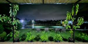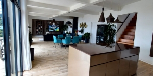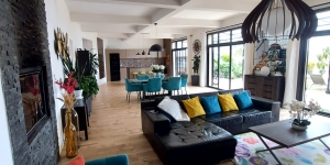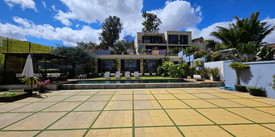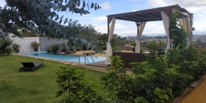 Toutes les pièces sont lumineuses grâce à 8 grandes baies vitrées donnant une vue panoramique sur des rizières et sur Tana.