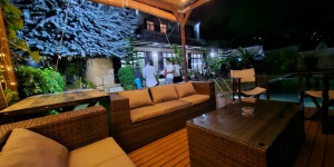 Dans une petite résidence à 2mn en voiture du Leader Price et 3mn du lycée français une grande villa contemporaine meublée de 200m2 de 4 chambres, salon/salle-à-manger, 2 cuisines, buanderie, 2 salle-de-bain, 3 wc, cour de 400m2 et jardin arboré et piscine à débordement.