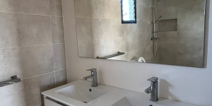 • RDC: 1 living et cuisine à l'américaine , 2 chambres, 1 salle d'eau (douche à l'italienne + WC),  1 WC visiteur ,  Cuisine extérieure et buanderie.