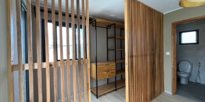 • RDC: 1 living et cuisine à l'américaine , 2 chambres, 1 salle d'eau (douche à l'italienne + WC),  1 WC visiteur ,  Cuisine extérieure et buanderie.